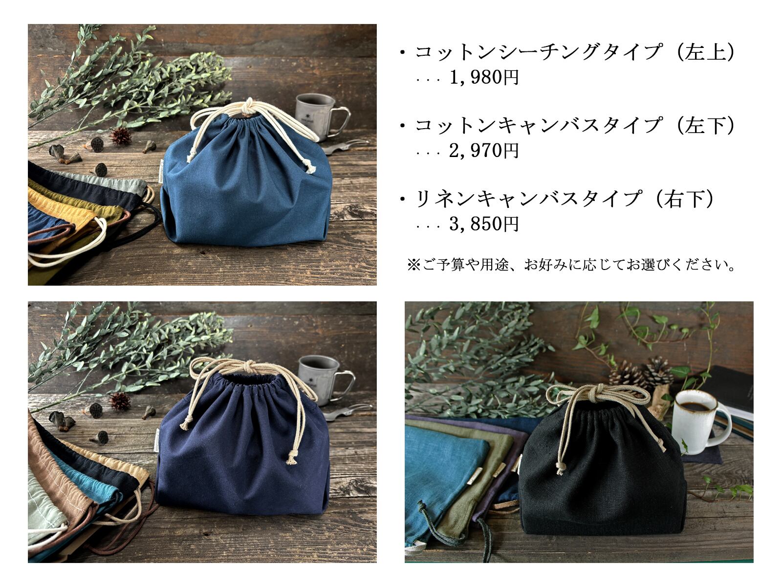 暮らしに寄り添うデイリーユースの巾着袋「Kinchaku Daily」リネンキャンバスタイプ、お弁当用。
