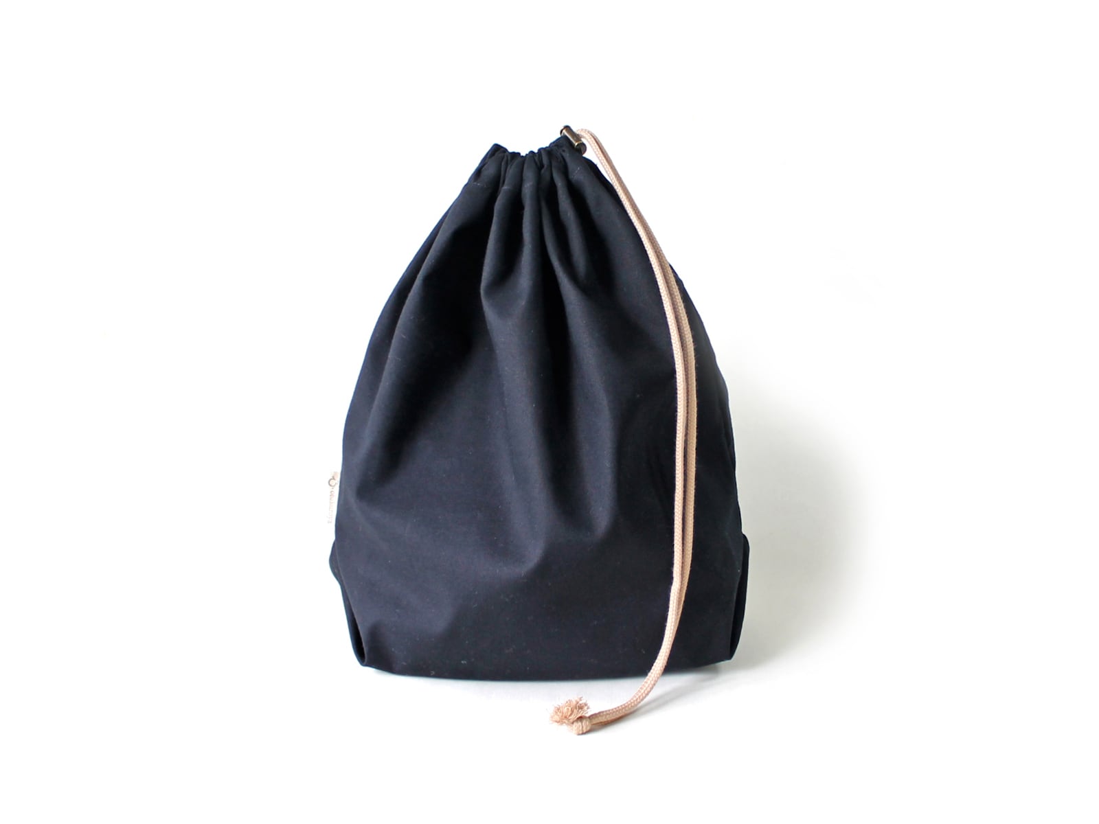 自然でさりげない、シンプルな基本の巾着袋、コットンシーチングタイプ。