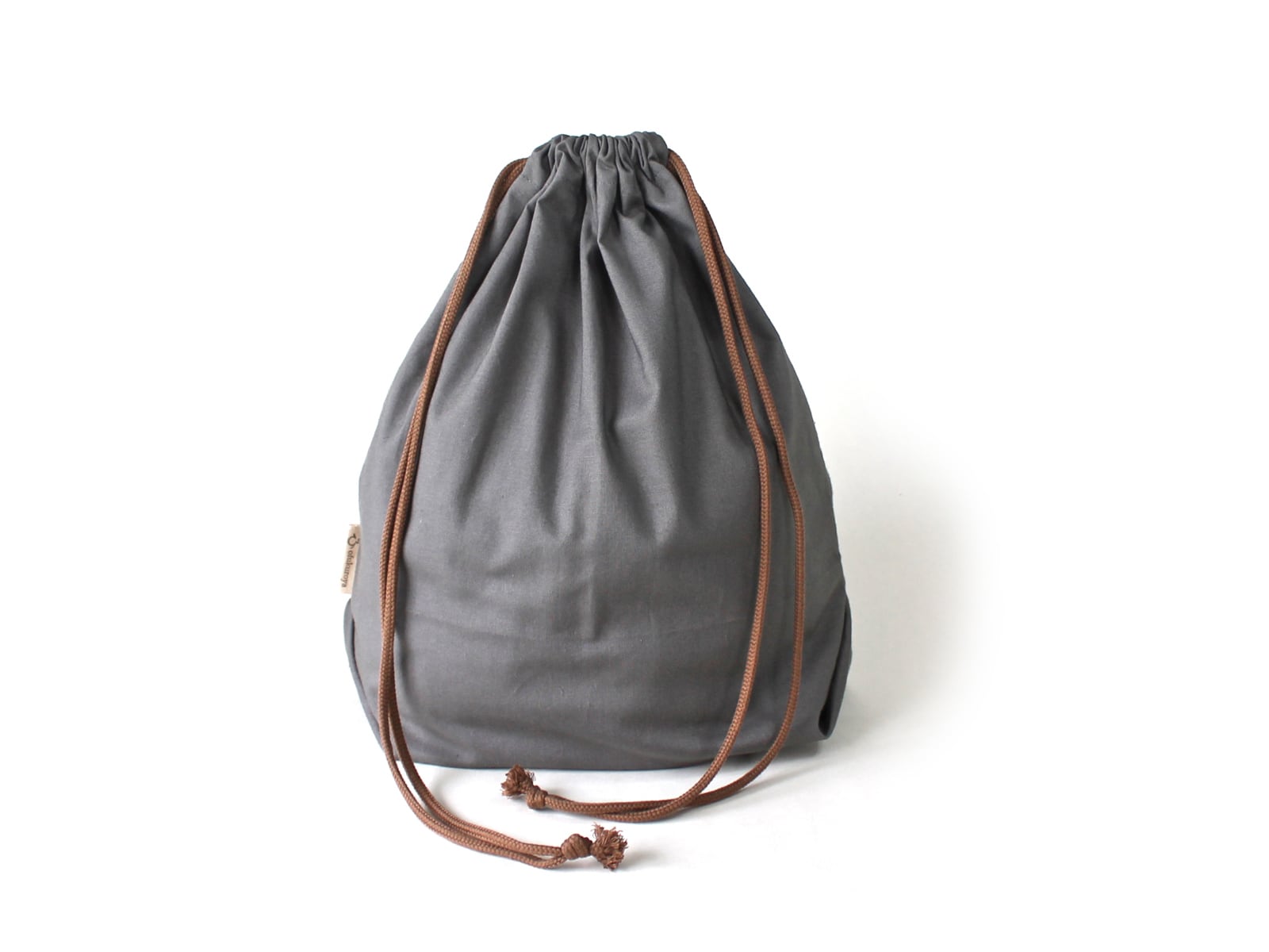 自然でさりげない、シンプルな基本の巾着袋、コットンシーチングタイプ。