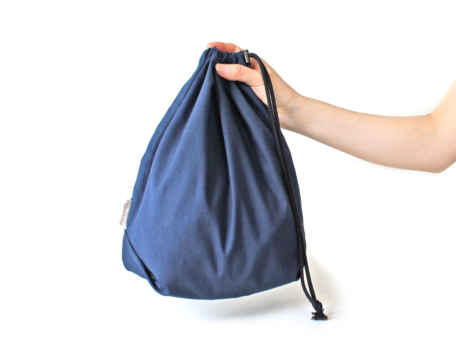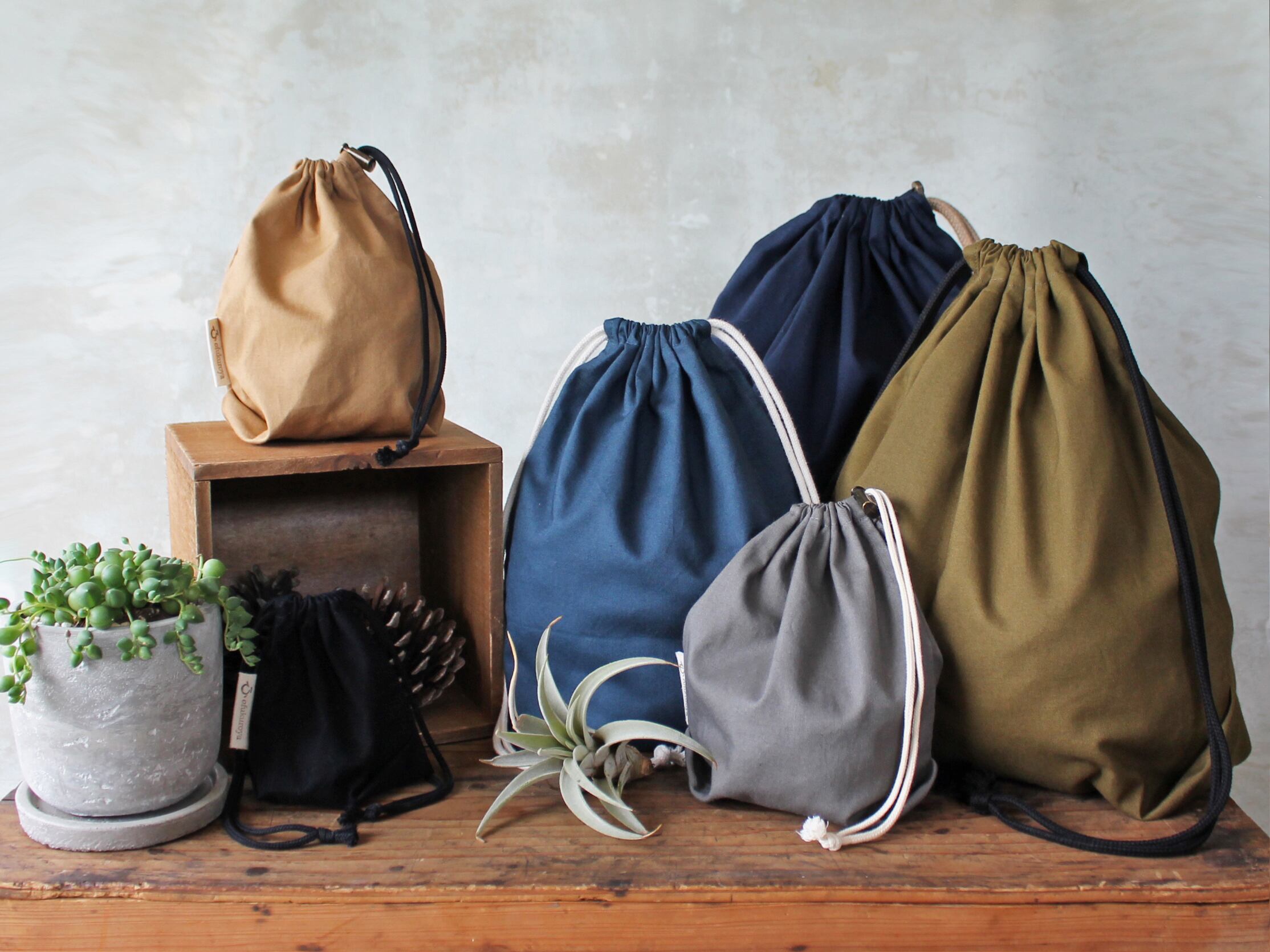 自然でさりげない、シンプルな基本の巾着袋、コットンシーチングタイプ。