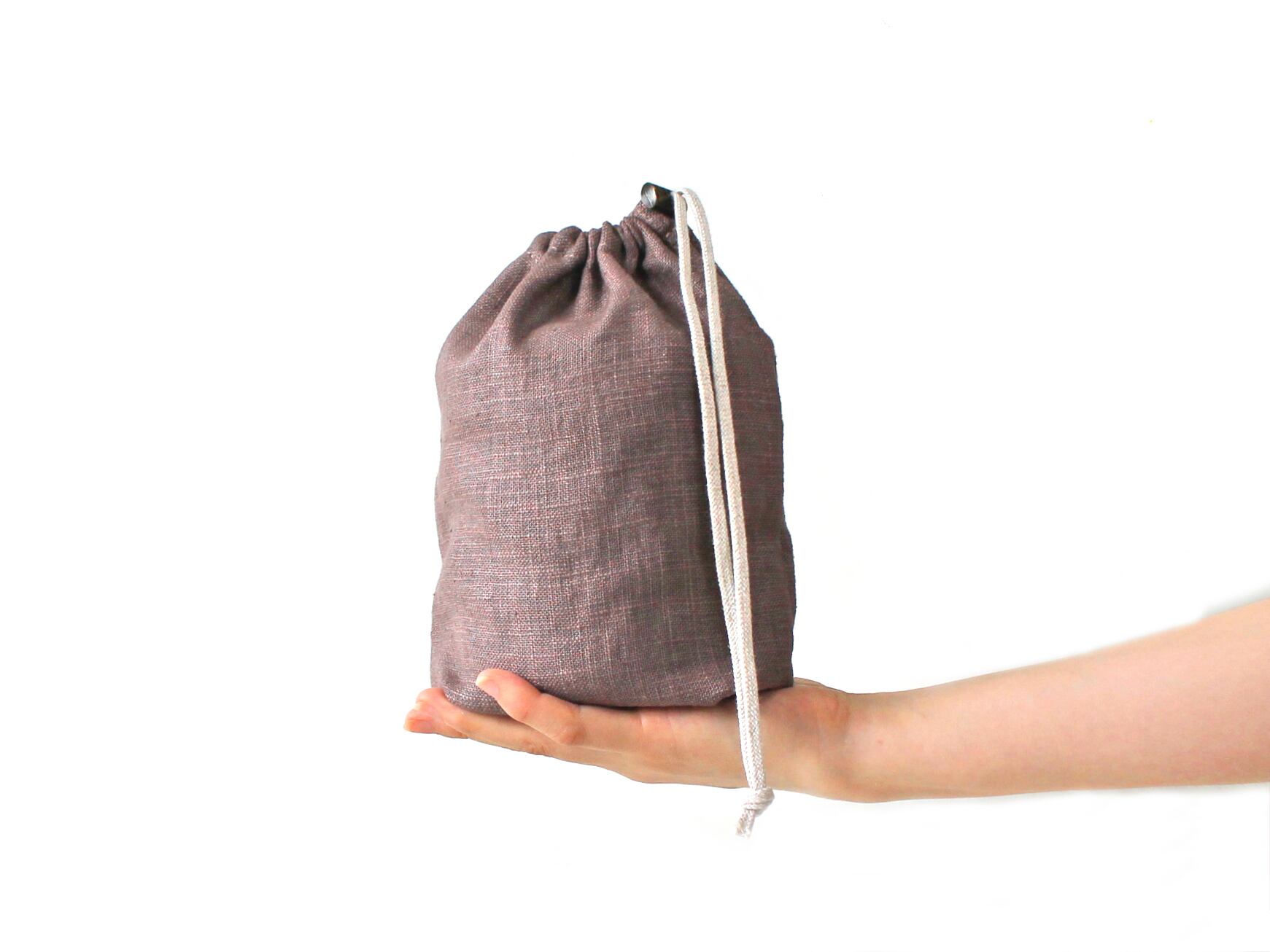 柔らかくもハリのある「麻」独特の質感が味わい深い、いつまでも大切にしたくなる巾着袋です。