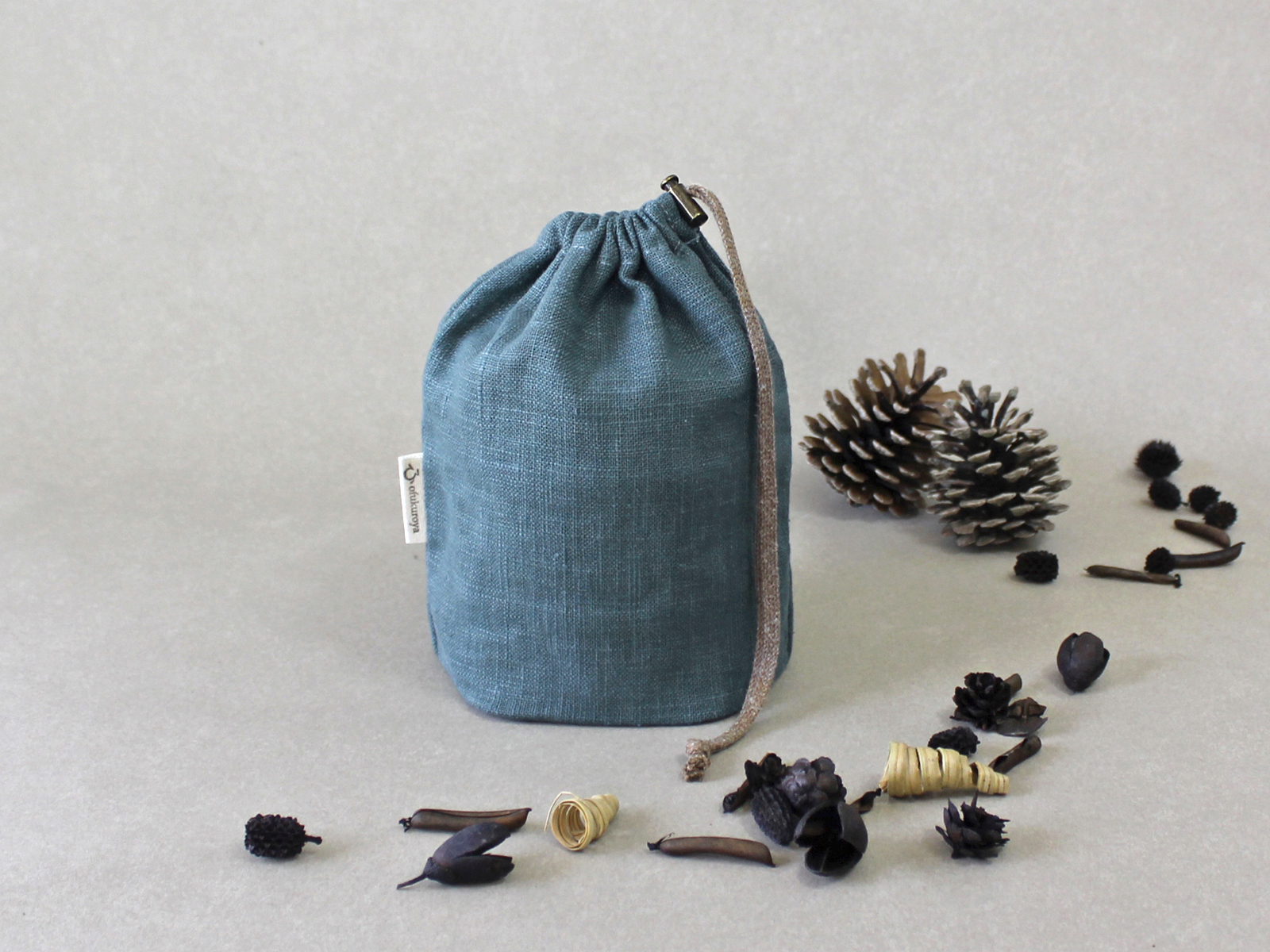 柔らかくもハリのある「麻」独特の質感が味わい深い、いつまでも大切にしたくなる巾着袋です。