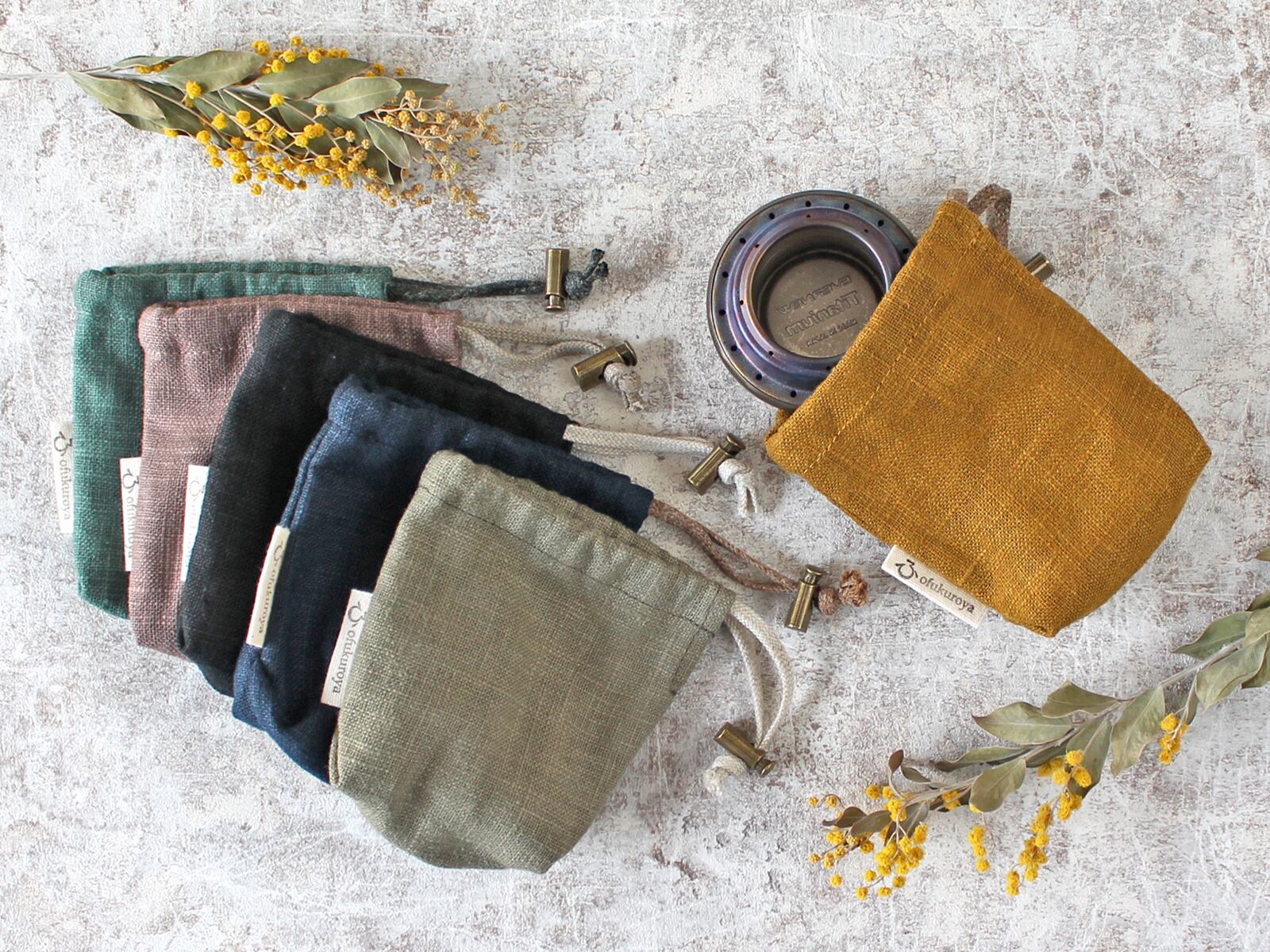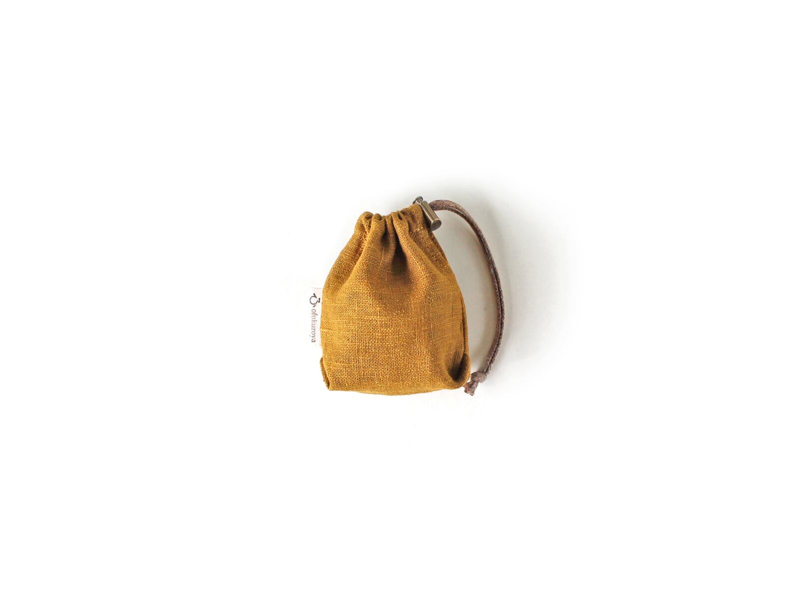 柔らかくもハリのある「麻」独特の質感が味わい深い、いつまでも大切にしたくなる巾着袋です。