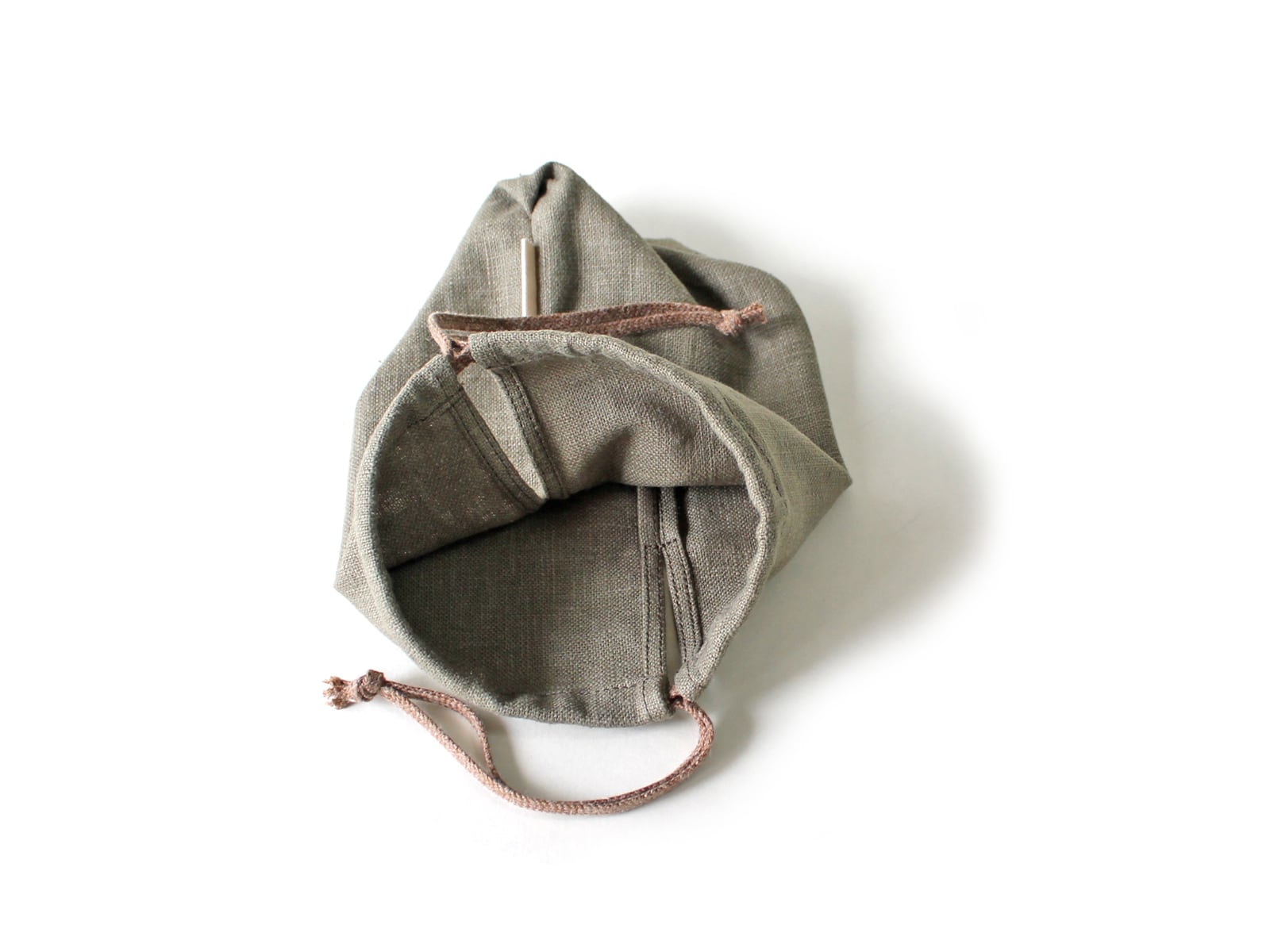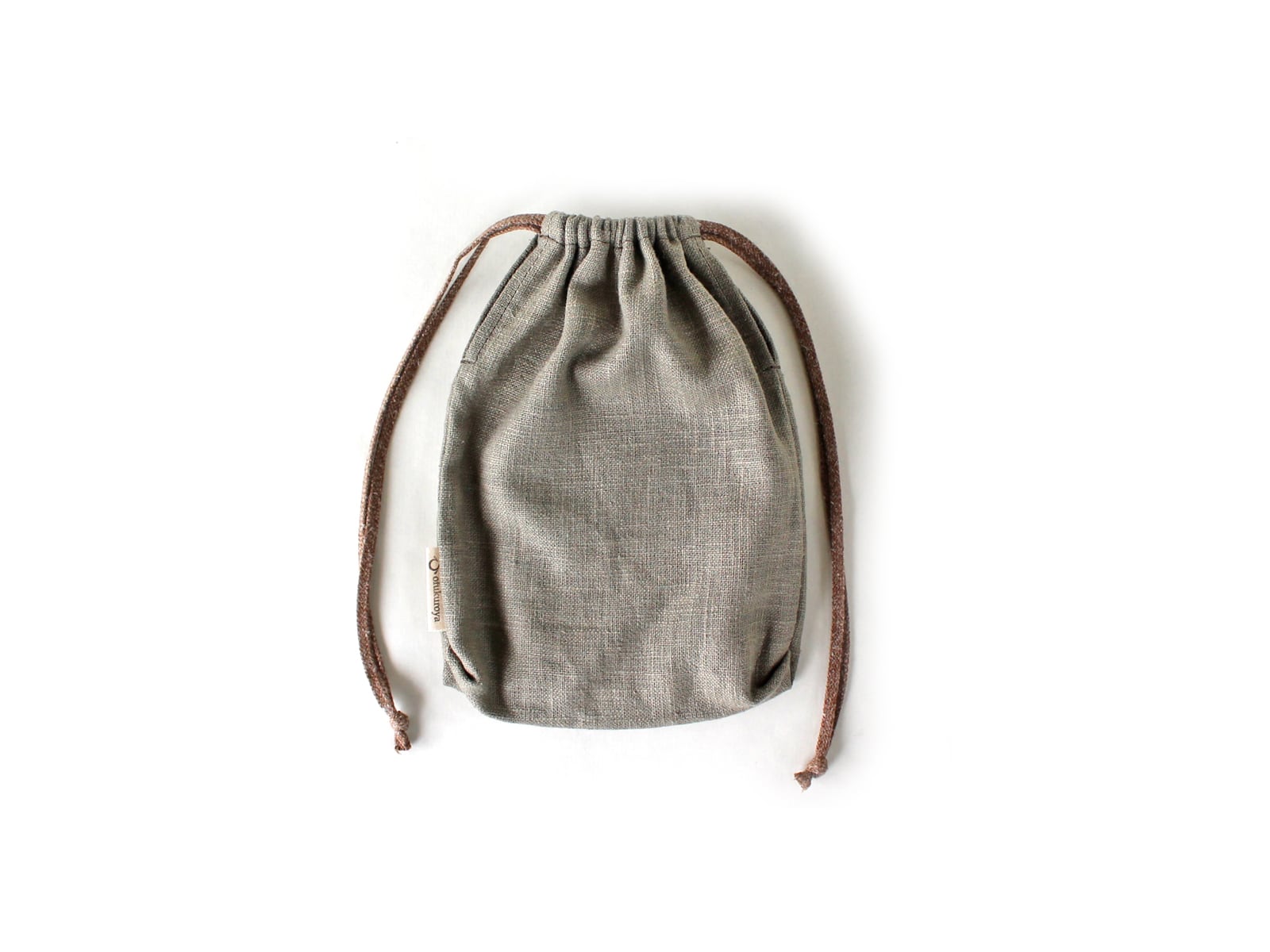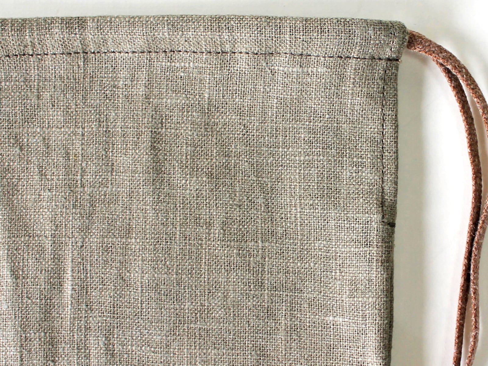 柔らかくもハリのある「麻」独特の質感が味わい深い、いつまでも大切にしたくなる巾着袋です。