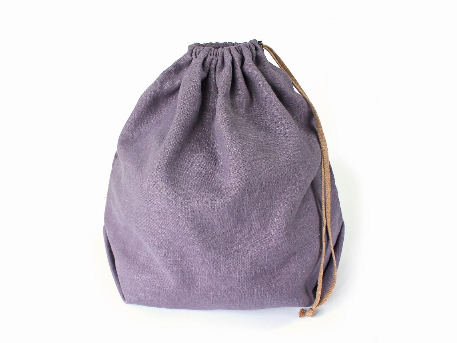 自然でさりげない、シンプルな基本の巾着袋、リネンキャンバスタイプ。